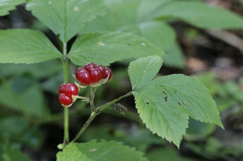 The beautiful red aggregate fruits are edible, but the seed inside each drupe is large and the juicy cover thin. If you find a dense patch of stone bramble you can suck at the sourish fruits around the seeds. They contain many valuable substances but somehow ones appetite is quite quickly satisfied.