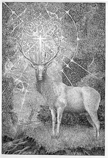 The red deer of St Hubertus, bishop and patron saint of hunters, is depicted since the 7th century with a golden cross between the magnificent antlers.