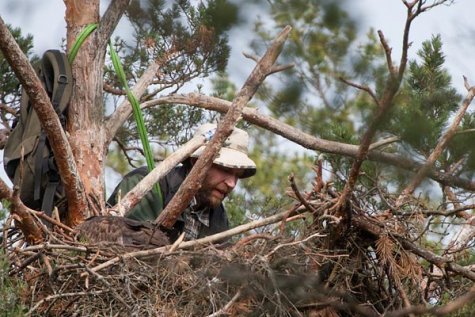 Eagle man Urmas Sellis ringing white-tailed eagle chick