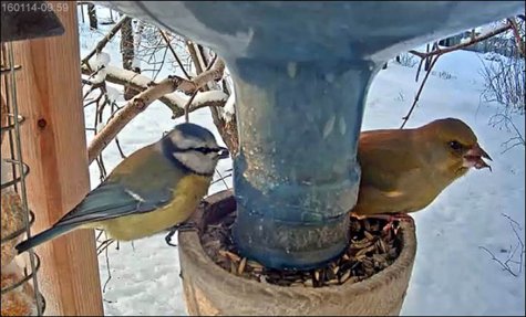 Blue tit and greenfinch