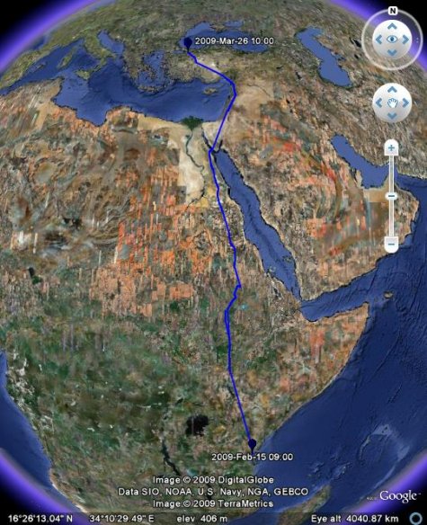 Raivo’s spring migration began this year on the 15th of February in Tanzania and his last locations we received yesterday, placing him at the Bosporus Strait. Raivo has probably reached Europe by now.