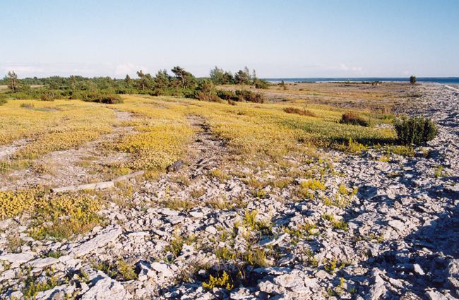 Just like klint forest belongs inseparably with the foot of klint scarps, alvars belong with the klint plateau. Alvar is an area of low but species-rich xero- and calciphilous vegetation on a limestone plateau covered with a thin (less than 0.5 m) layer of earth or gravel. Alvars are differentiated into three types on the basis of their vegetation: