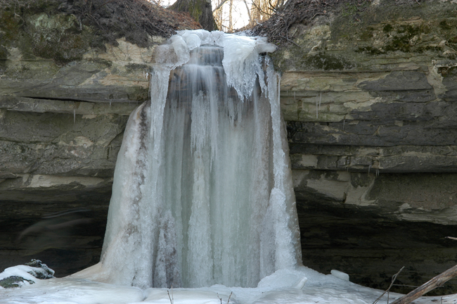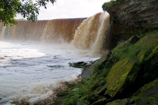 Jägala Waterfall on the Jägala River in Harju County is the mightiest of the continuously functioning waterfalls in Estonia: the average discharge of this up to 60-m-wide and 8-m-high waterfall is 12.8 m3/s (up to 200 m3/s during the spring high water period). Formed on the boundary strata between limestone and sandstone complexes, Jägala Waterfall has been retreating ever since its formation about 3000 years ago, leaving behind a 280-m-long and 10–14-m-deep canyon. In the years 1688–1931 the waterfall retreated at a rate of app. 17 cm a year (Kaljuvee 1931).
