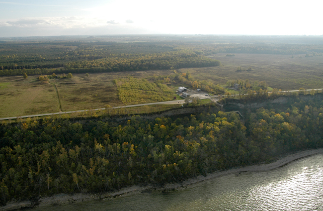 Narva Waterfall or, more specifically, its escarpments, are located at where Kreenholm Island divides the Narva River into two: the up to 60-m-wide and up to 6.5-m-high Kreenholm Escarpment in the west and the up to 110-m-wide and up to 6.5-m-high Joala Escarpment in the east, on the border between Estonia and Russia. The top of the waterfall escarpments consists of iron-ooid-containing limestone of the Middle Ordovician Aseri Stage and lies at the level of up to 17 m asl on both the eastern and western escarpment. The foot of the escarpments lies at the level of app. 10 m asl and is an outcrop of glauconite-containing variegated limestone of Volkhov Stage. About 200 m upstream of the main escarpments, the river drops by nearly 2 m within a distance of 50 m. During the spring high water of 1926, the discharge of the Narva River was measured at app. 2000 m3/s, while the present average discharge is considerably smaller (up to 400 m3/s).