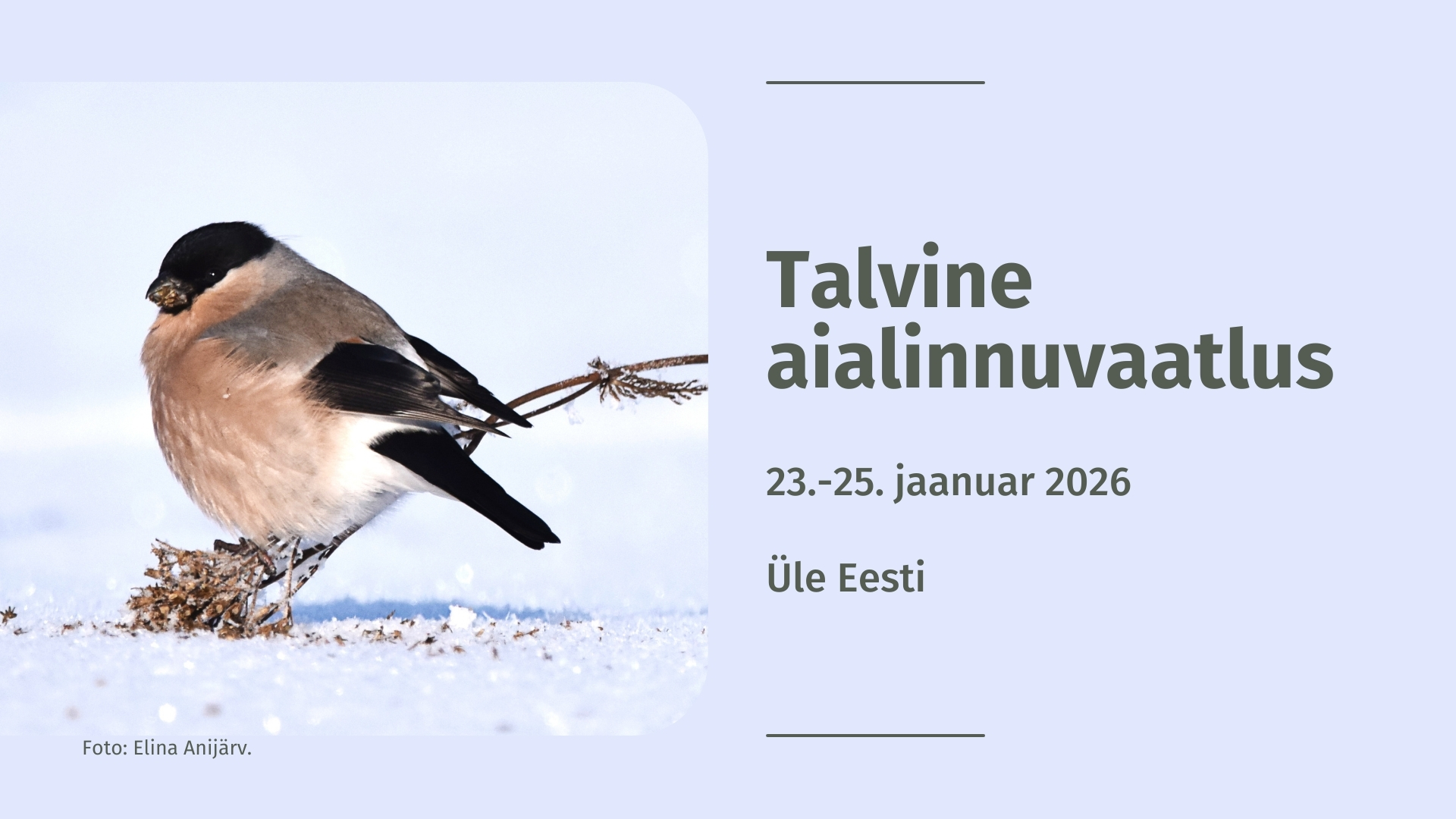 Eesti Ornitoloogiaühing kutsub jaanuari viimasel nädalavahetusel (23.-25. jaanuar 2026) taas kaasa lööma talvisel aialinnuvaatlusel.