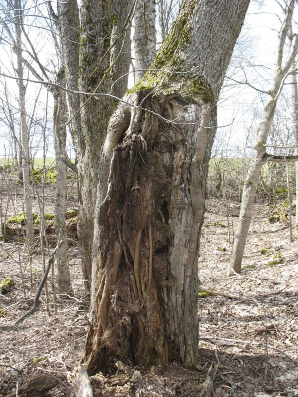 Lõhenenud puu sees oli kujunenud õõnsus, kus kasvasid õõnejuured.