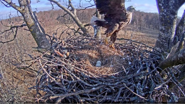 Täna peaks olema merikotkastel olema 17 munade haudumise päev. Emaslind munes esimese muna 20. ja teise 24. märtsil. Merikotkaste haudumine võib kesta 34-st kuni 42 päevani.