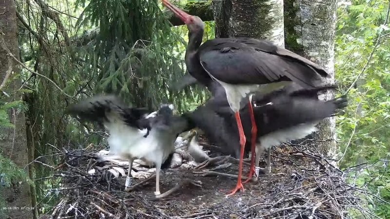 Seni on kurepojad toodut vaid uudistanud ja tänasel esimesel söötmisel tarbisid vaid isaslinnu poolt pesale toodut. Eks noorlinnud on veel öiste toimetamiste mõju all, aga paistavad kosuvat. Eks tänane vihmane päev näitab mis ja kuidas?