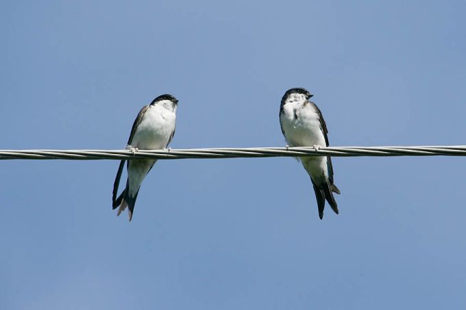 Mõlemad sugupooled väga sarnase sulestikuga. Selg sinimustalt läikiv, kogu alapool valge, lühikese ja harkis sabaga, mille võime märgata valget laiku.