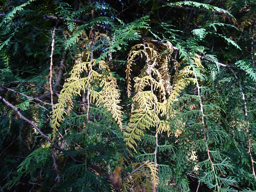Elupuudel värvuvad vanemad võrsed samuti septembris, tema on heitvõrsine okaspuu. Aednikud soovitavad hilissügisel (oktoobri lõpul, novembri algul) elupuude ja kadakate põõsad varisenud pruunistunud võrsetest puhastada, et õhk paremini võras liiguks ja sellega vähendada seenhaiguste (nt elupuu-pudetõbi) levikut.
