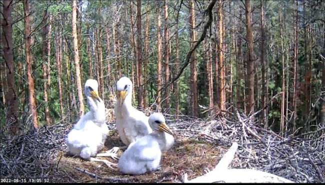 Hommik oli juba päikseline ja emaslind Kaia saabus pesale, kus ta oli keskpäevani, kui isaslind saagiga pesale naasis. Eile vähe toitu saanud kurepojad kerjasid toitu ja emaslind nokkis kõige pisemat… Näeme lähipäevil, mis juhtuda võib?
