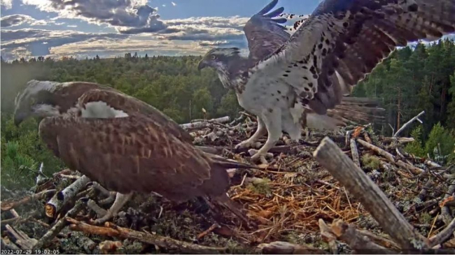 Tartumaa kalakotkapaari emaslind Iirise ja isaslind Ivo (kalakotkakaamera2) pesal koorusid kolm kotkapojad nelja nädala eest.