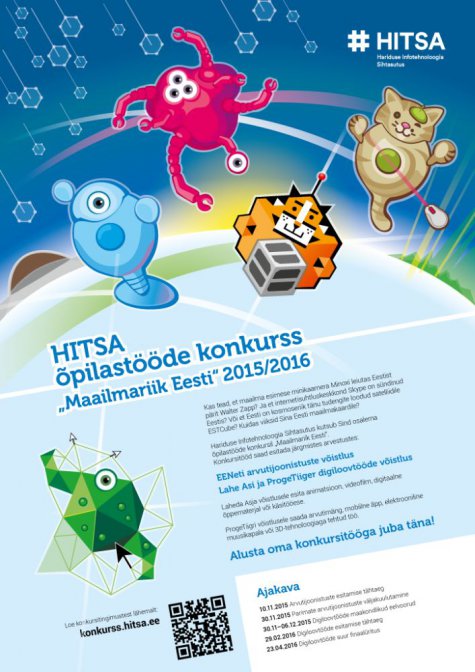 Tänavune, järjekorras juba neljateistkümnes EENeti arvutijoonistuste võistlus on osa HITSA õpilastööde konkursist: "Maailmariik Eesti" 2015/2016: LINK