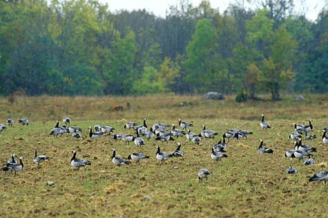 Valgepõsk-lagled põllul. Matsalu rahvuspark