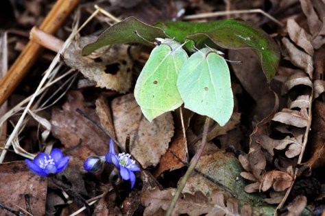 Ein solcher Winterruhezustand, oder Diapause, erfordert ganz subtile physiologische Einstellungen vom Schmetterling. Die ersten Zitronenfalter wachen allerdings auf, sobald die Sonne die ersten schneefreien Flecke auf dem Waldboden schmilzt. Die Sonne wärmt den schwarzen Körper des Zitronenfalters und der Schmetterling gebraucht seine zitronenfarbenen Flügel als Klimaanlage. Wie genau auch immer sie jedoch suchen, die ersten Flieger sind alle geschmolzene-Butter-gelbe Männchen. An warmen Tagen sind sie überraschend aktiv - man kann sie einander jagend in die Höhe wirbeln sehen, und an Weidenkätzchen und Huflattichblüten Nektar trinken. Es ist überraschend, denn sie dürfen mit den ersten Flügen an den ersten warmen Tagen nicht ihren physiologischen Frostwiderstand zerstören - Frühling ist eine launische Jahreszeit und viele kalte Tage und sogar kältere Nächte kommen noch. Die Zitronenfalter müssen immer wieder für kürzere oder längere Perioden im welken Gras erstarren und auf die Rückkehr wärmerer Zeiten warten. Sogar ein Spritzer Schneematsch oder Regen auf seinem Rücken stören ihn nicht - wenn nur die Sonnenstrahlen ihn wieder zum Aufwärmen erreichen.