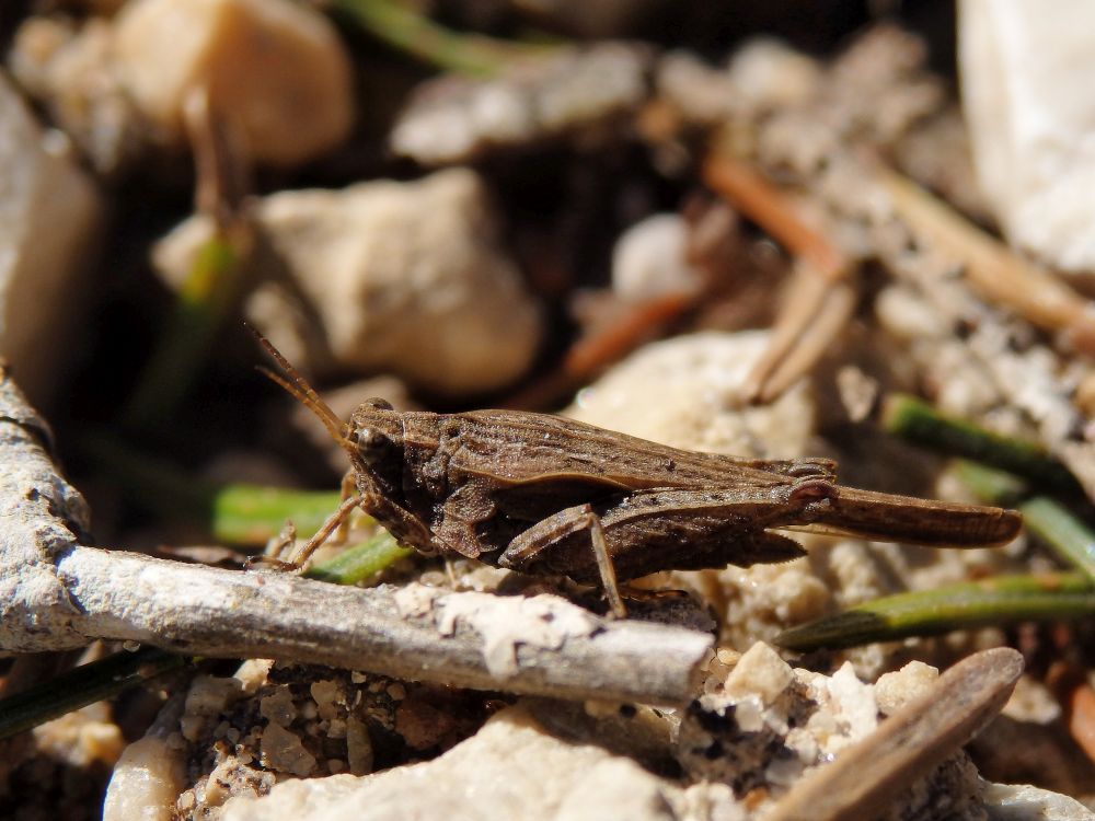 Bevor es im Frühjahr grünt, können wir kleine Insekten, die an Grashüpfer erinnern, in Aktion auf dem Boden sehen. Das sind Dornschrecken oder Miniatur Heuschrecken.