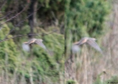 Naumann’s thrush (Turdus naumanni) 19.11.2012 at Pitkäna, Kihnu island – new species for Estonia! An extremely secretive bird whom it was complicated to capture in a photo. But the characteristic traits of the species are visible even in the foggy photo (Photo: Uku Paal)