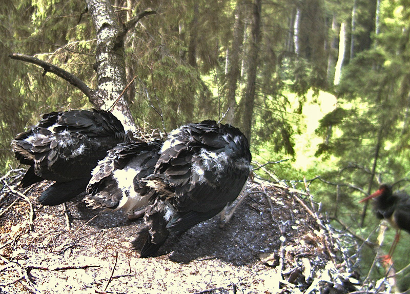Saturday after noon a stranger stork visited our storklets, it spend 13 minutes on branch beside the nest and that time camera