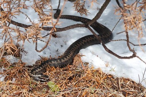 Oli põnev madude aasta: ärkav rästik Matsalus Salevere pangal