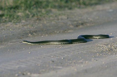 Ringelnatter auf der Straße