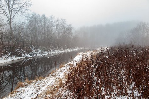 Ich überquerte den Steg und da war ich am Rand der Überschwemmungsebene. Ein schneller Blick auf den Schnee zeigte, dass ich zur richtigen Zeit am richtigen Ort war. Dort waren viele sechs- und achtbeinige Insekten, würdig eines Naturschutzgebiets.