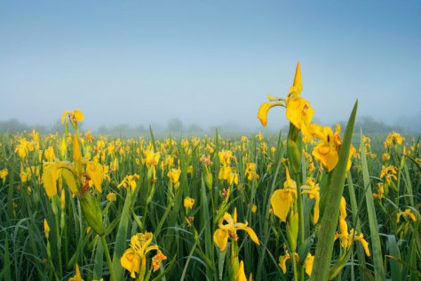Gelbe Schwertlilien in goldener Morgensonne. Foto: Jakob Oetjen