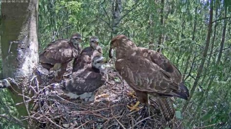 Die jungen Bussarde wachsen sichtlich. Das Nest wird langsam zu klein.