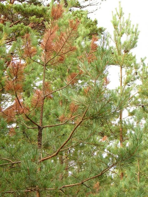 Reddish brown branches can be seen on the trees already in summer. These branches have died by some disease or damage