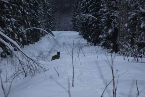 There were occasions when I and my sister started off in early morning to the bus stop, and a wolf pair regarded us from around the barn corner. Mother then used to call out loudly - whooah, wolf! – whereupon the creatures lazily trotted away across the field towards the forest showing far away. I and my sister turned the other way, and excitedly shining at the shrubs on the roadsides with our flashlight, we scurried through the forest, towards the road where our school chums were already waiting at the bus stop. And the occasions were not rare when a pair of shining eyes glowed from the shrubs in the darkness, in answer to the beam from our flashlight. We didn’t know if the eyes belonged to a fox, a wolf or some other animal. A little frightening it was anyway.