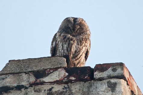 Where then does Klaus spend his days when we see Klaara in the nest in daylight? His day is spent slumbering in some calm and sheltered place, maybe a dense spruce hedge. Sometimes quite openly on the top of some chimney that is not in use. In a large spruce he leans his body against the trunk to feel safer and more secure, and so a tawny owl blends into nature unnoticed by us.