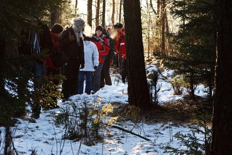 In Estonia weather is a really strong force – it directs our doings, for better and for worse. Sometimes it makes active, sometimes passive. Some of us are more sensitive, others adapt quickly – so it was with the people in these pictures. There were nearly 150 people on the icy paths of the Mahtra marshlands on the weekend, people came from Tallinn and from Tartu, some even from Virumaa. For most of them this was their first experience of winter walking in a marshland and there were surely some surprises. Hopefully they will not keep the adventure to themselves, and the most important message will spread –bogs and marshlands are good for rambling in all seasons, not only going for cranberries in the autumn. The ice will hopefully remain, and new ramblers can contact the Mahtra Rahvakool, to register for coming rambles.