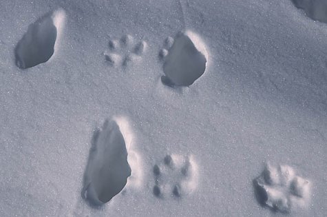 In winter the paws are covered by fur which increases the area that carries the lynx on snow. As cats do, they usually move with the claws retracted, so the paw mark looks large and rounded.