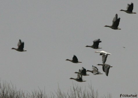 This year’s floods promise good conditions for the migration stop-over of geese, and we can hope to see many of them this year. Interesting individuals often appear in the large flocks. A particularly eagerly looked for event is seeing a snow goose, very rare here, or the even rarer lesser snow goose. The Estonian Bird Rarities Committee has steadily had problems with the evaluation of the “white geese” observation form. Here are a few hints about some of the pitfalls in identifying “white geese”.