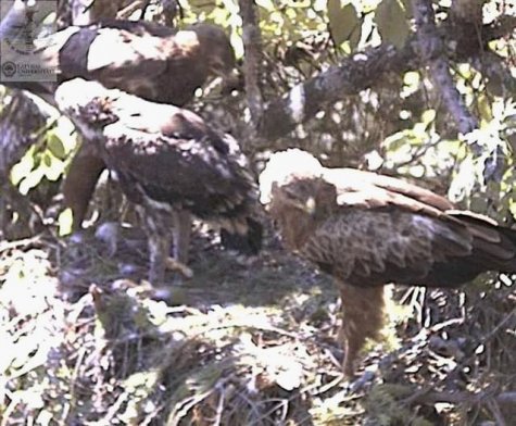 A nice family photo: the lesser spotted eagle male, Gints, usually smaller than the female, in the foreground.