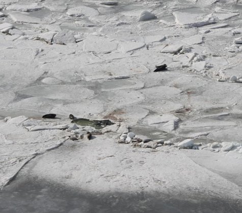 In the beginning of April all grey seal pups have been born and have also become independent of their mothers. Now they only wait for the ice to break up.