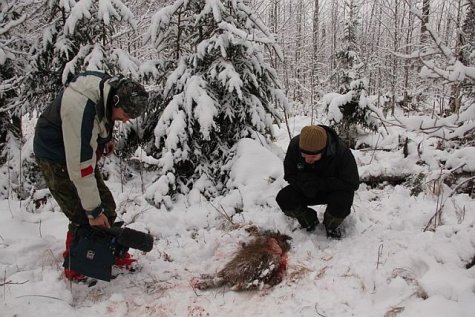 Otsisime huntide jälgi teisipäeval, eesmärgiga teha saatelõik võsavillemite talvistest tegemistest. Peale pikka ja tulutut sõitmist mööda Kõrvemaa metsateid saime värsket luureinfot Alutaguselt. Sõitsime kohale ja Sirtsi soo lähistelt leidsimegi verivärsked hundijäljed.