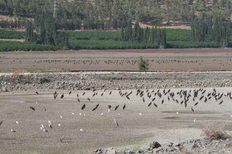 Jordani jõe orus peatuvad must-toonekured puhkavad peale toitumist sageli suurte tühjade kalatiikide põhjal: