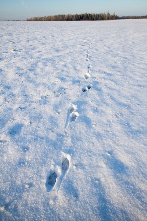 Suure hoo pealt viskus hunt kõhuli lumme justkui oleks tahtnud varjuda. Hoo kiirust näitavad lumepinda riivavad pikad jäljetriibud enne maandumist.