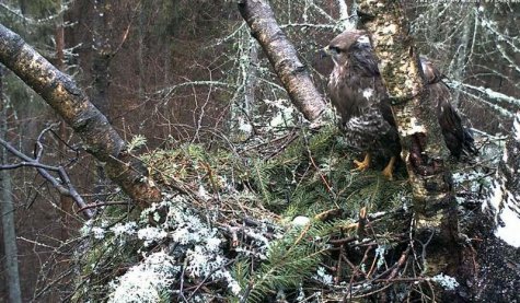Для канюков, живущих во втором гнезде, были выбраны имена для самца – Калью, а для его спутницы – Катрин. В сегодняшнюю слякотную погоду дольше всего яйцо согревала Катрин, но и Калью в этом принимал участие.