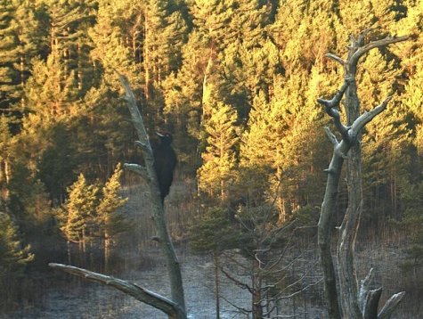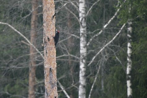 Новые гости являются туда, где кто-нибудь уже есть. В выходные дни нам показался наш самый большой дятел – чёрный дятел. Это была птица с красной макушкой, которая или самец, или молодая птица. У самки красная полоса лишь на затылке. Это представитель больших лесных массивов, численность которых в наших краях в зимний период может достигать пятнадцати тысяч.