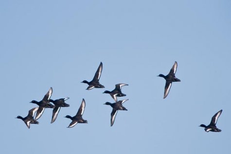 The transit migration of tufted ducks still lasts in November. The autumn migrants are around thirty thousand; the greatest numbers of those who make a stop can be found at the Väike väin, Käina laht, Matsalu, Haapsalu Tagalaht and larger inland waters. If there are ice-free waters a few hundred winterers will remain in western Estonia. Aquatic invertebrates: molluscs, crustaceans and insects are on the menu of these very skilled divers.
