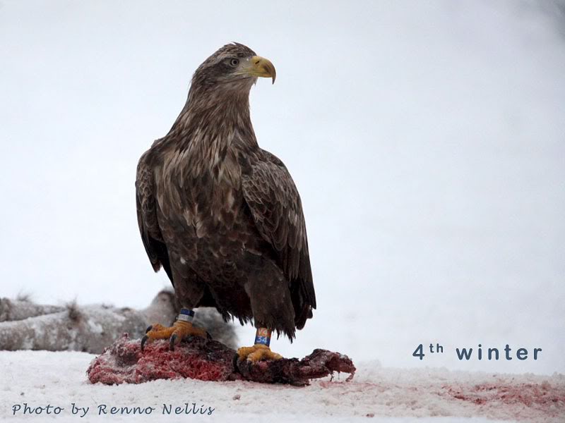 Los pigargos visitan en gran número el lugar de alimentación y observamos grandes diferencias en los diferentes plumajes. Hay que tener en cuenta tanto el color del plumaje, del pico como las conspicuas plumas blancas que aparecen en los ejemplares adultos...
