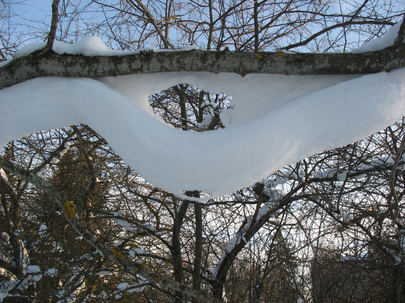 Lumi voolab okstelt, moodustades huvitavaid kujusid.